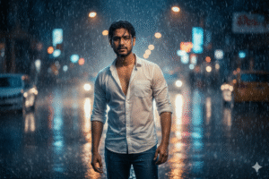 Bollywood Hero Style | Casual Jeans + White Shirt | Rain / Dramatic | Filmy, Trendy | Social Media DP |