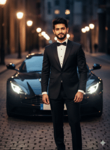 Modern Gentleman Look | Black Tuxedo | Luxury Car | Classy, Cinematic | Film Star / Professional Look |